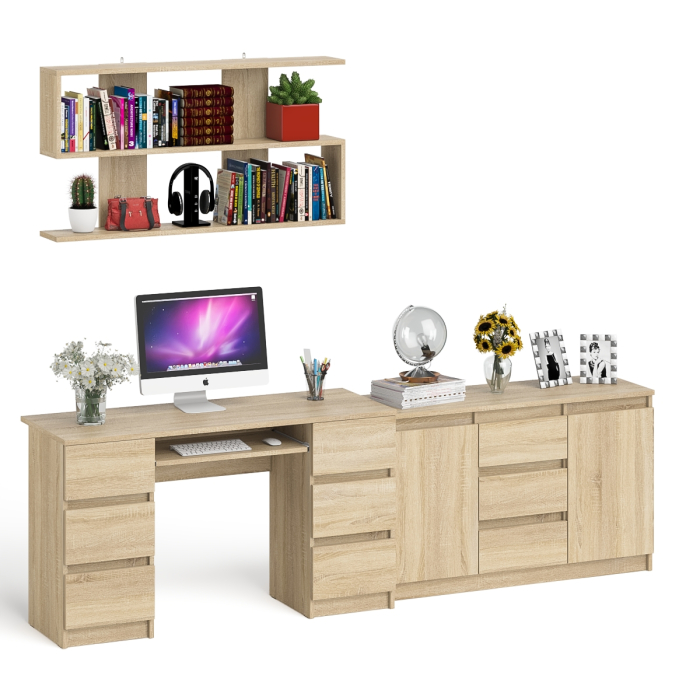 Отзывы о Столплит Двухтумбовый стол компьютерный с ящиками МС-2 с тумбой-комодом и полкой 1200 Мори Дуб сонома