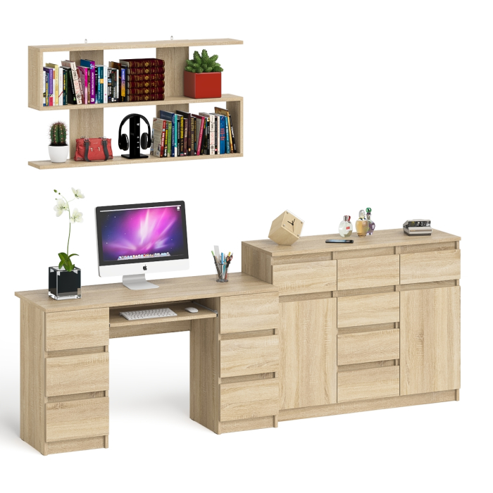 Отзывы о Столплит Комод-тумба Мори МК1200.4 с открытой верхней полкой и стол компьютерный МС-2 Дуб сонома