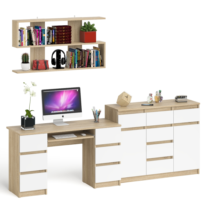 Выполнено в 5 цветах: белый, графит, графит/белый, дуб сонома и дуб сонома/белый.