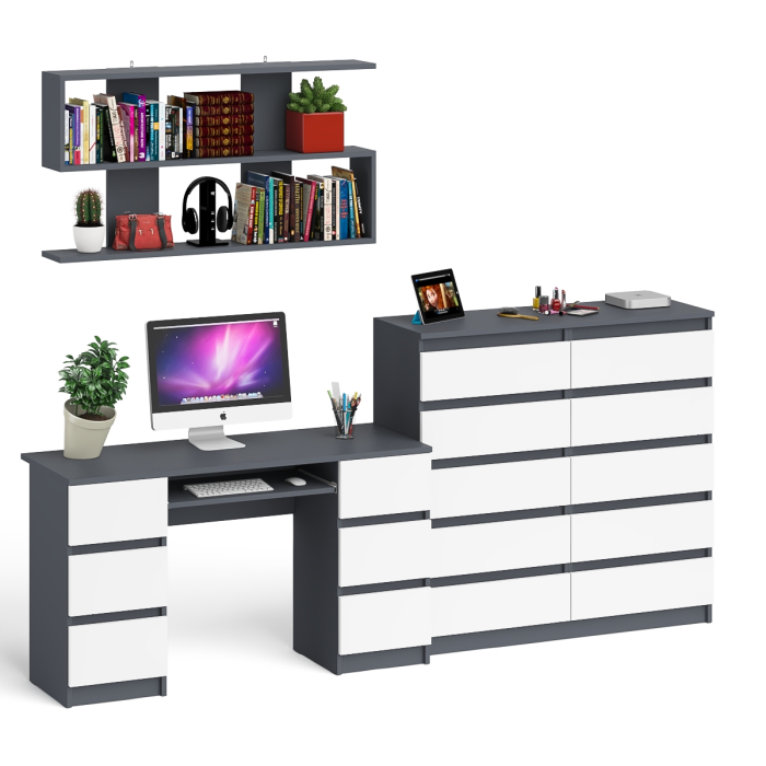 Выполнено в 5 цветах: белый, графит, графит/белый, дуб сонома и дуб сонома/белый.