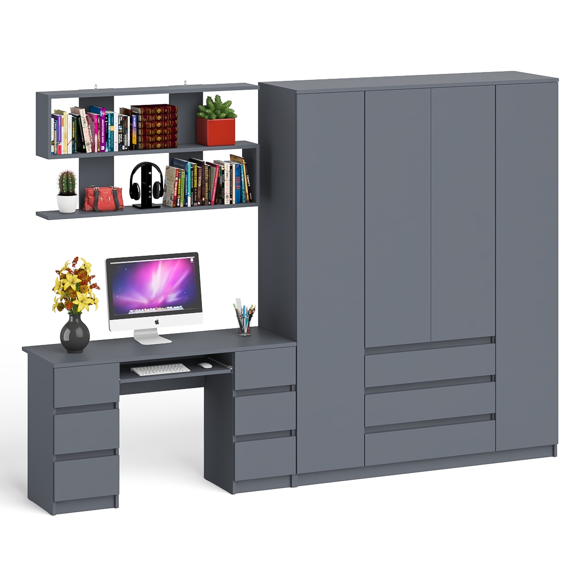 Отзывы о Столплит Большой 4-х дверный шкаф-комод Мори МШ1600.1 и стол с верхней навесной полкой Графит