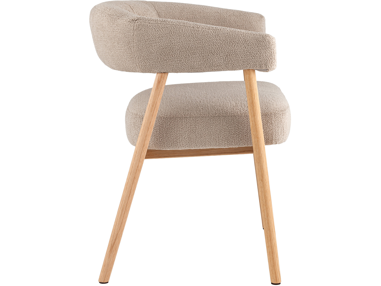 Стул отличается лаконичным современным дизайном с элементами скандинавского стиля. Элегантная обивка гармонично сочетается с ножками из натуральной дубовой древесины, создавая уютный и в то же время элегантный образ.