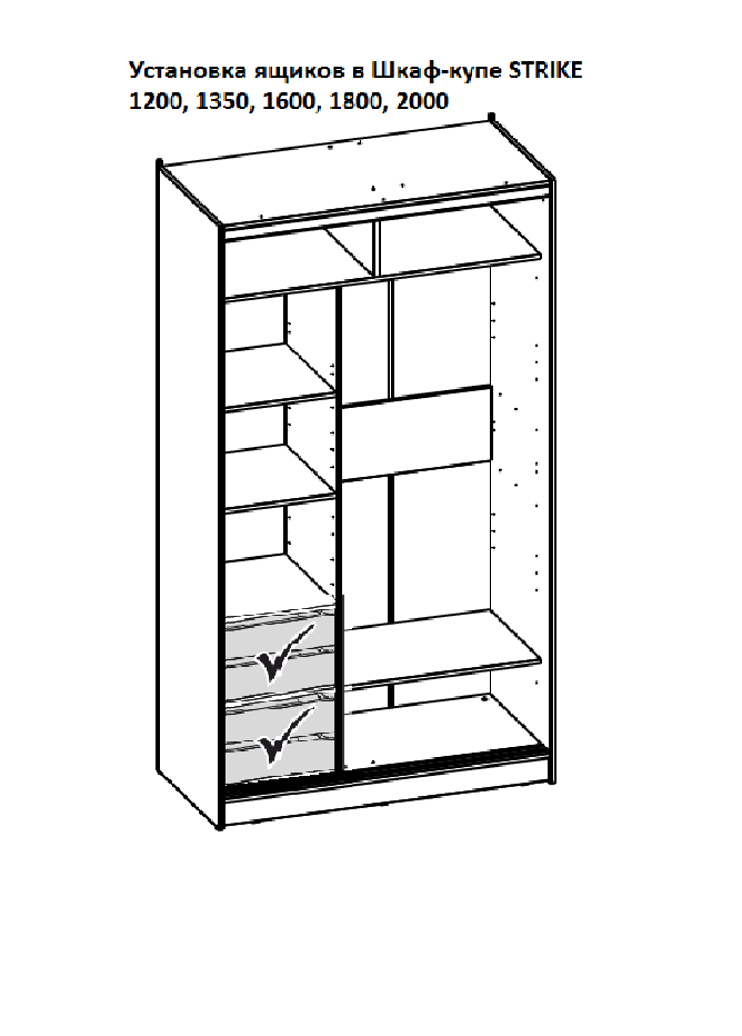 Для серии шкафов-купе Strike размеров: 1200, 1350, 1600, 1800, 2000.