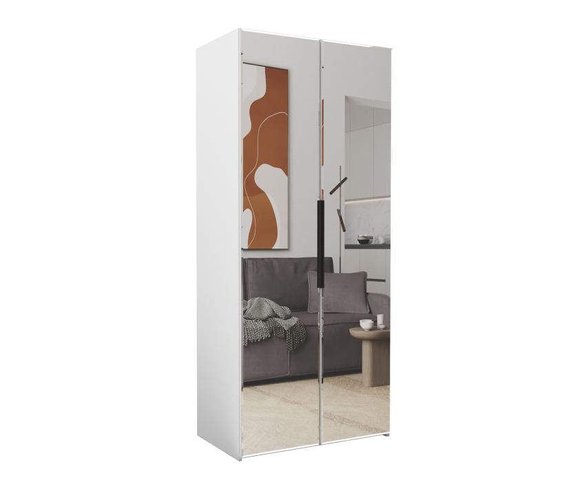 Фасад шкафа выполнен в рамочном исполнении из МДФ, окрашен в благородный белый цвет. Такая конструкция придаёт модели выразительность и архитектурную чёткость линий, а также отличается повышенной прочностью и износостойкостью.