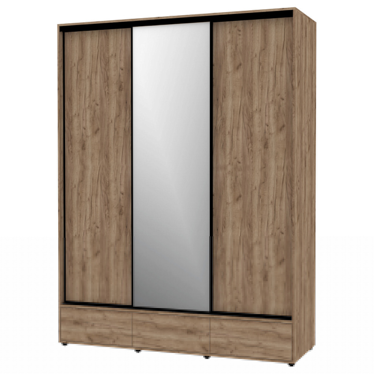 Отзывы о Столплит Шкаф-купе 3-дв MOD 1800 зеркало/лдсп (в2390*ш1800*г620) Табачный дуб