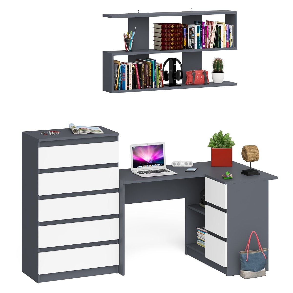 Комод Мори МК700.5 со столом компьютерным угловым МС-16 правым и открытой полкой 1200 (Графит/Белый) Код I0000450959