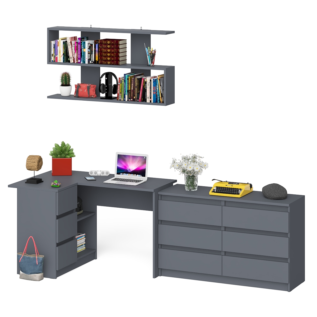 Стол компьютерный угловой МС-16 левый Мори с полкой для книг и широким комодом (Графит) Код I0000450963