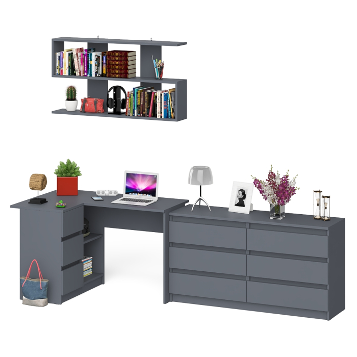 Отзывы о Столплит Стол угловой компьютерный Мори МС-16 левый с навесной книжной полкой и комодом МК1380.6 Графит