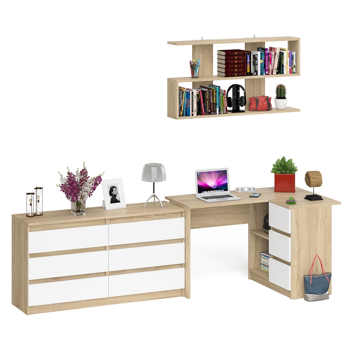 Выполнено в 5 цветах: белый, графит, графит/белый, дуб сонома и дуб сонома/белый.