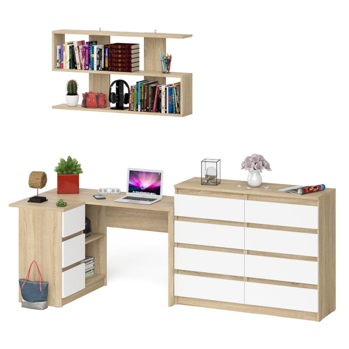 Выполнено в 5 цветах: белый, графит, графит/белый, дуб сонома и дуб сонома/белый.