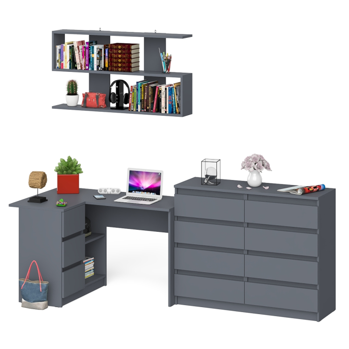 Отзывы о Столплит Книжная полка Мори 1200 с комодом 1200.8 и компьютерным столом МС-16 левым Графит