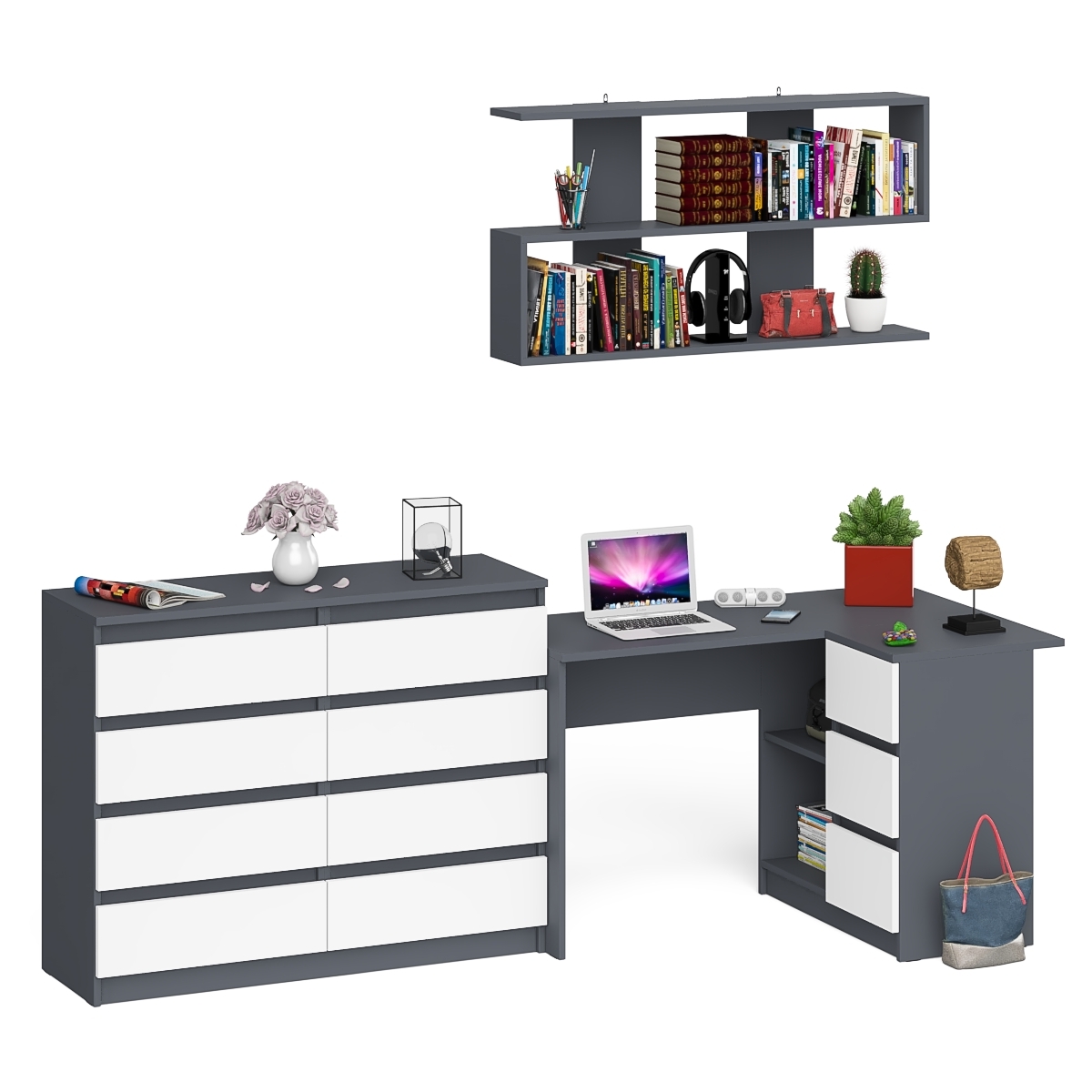 Отзывы о Столплит Стол компьютерный угловой с ящиками Мори МС-16 правый с навесной полкой и комодом МК1200.8 Графит/Белый