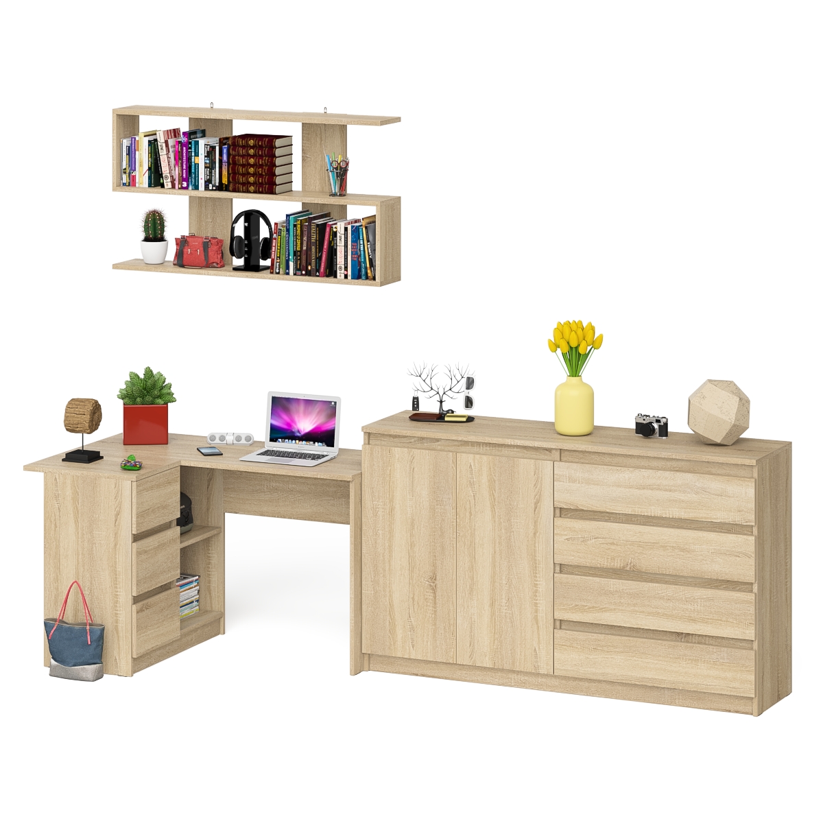Отзывы о Столплит Угловой компьютерный стол с тремя ящиками Мори МС-16 левый с тумбой-комодом и книжной полкой Дуб сонома