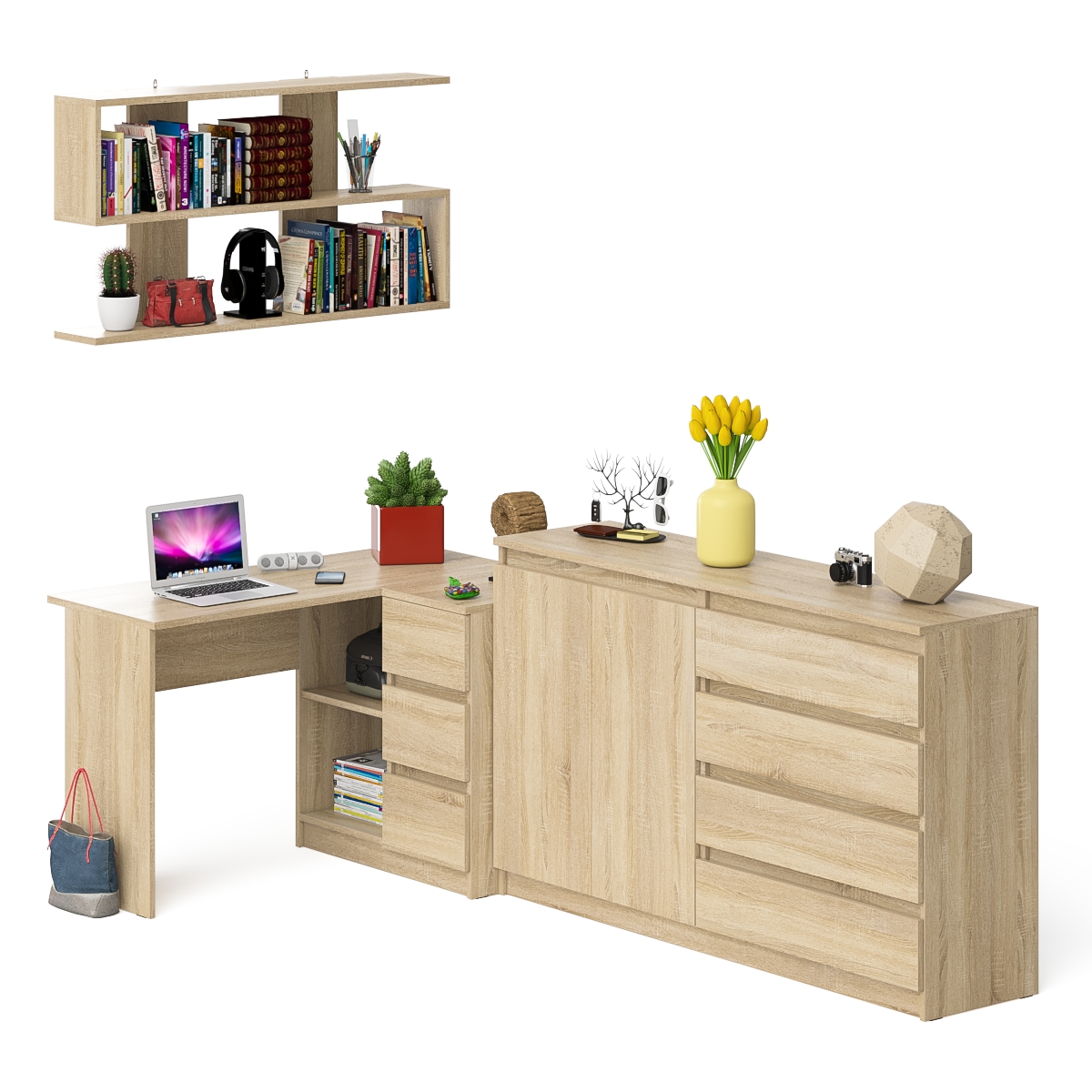 Отзывы о Столплит Тумба-комод МК1600.1 Мори с навесной книжной полкой и угловой компьютерный стол МС-16 правый Дуб сонома