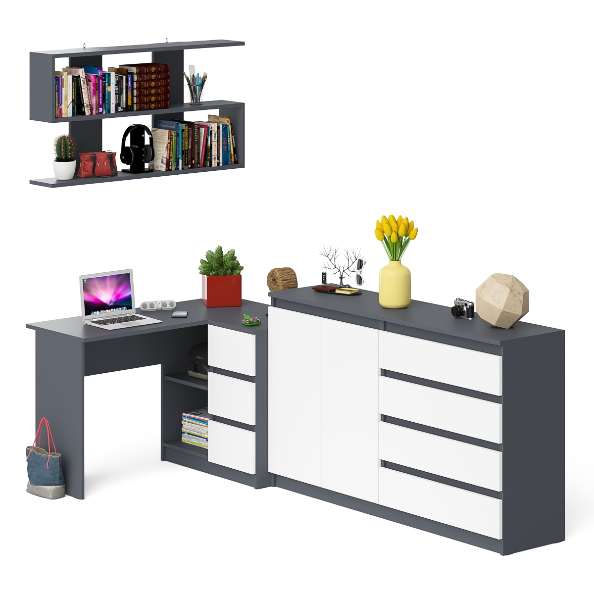 Отзывы о Столплит Тумба-комод МК1600.1 Мори с навесной книжной полкой и угловой компьютерный стол МС-16 правый Графит/Белый