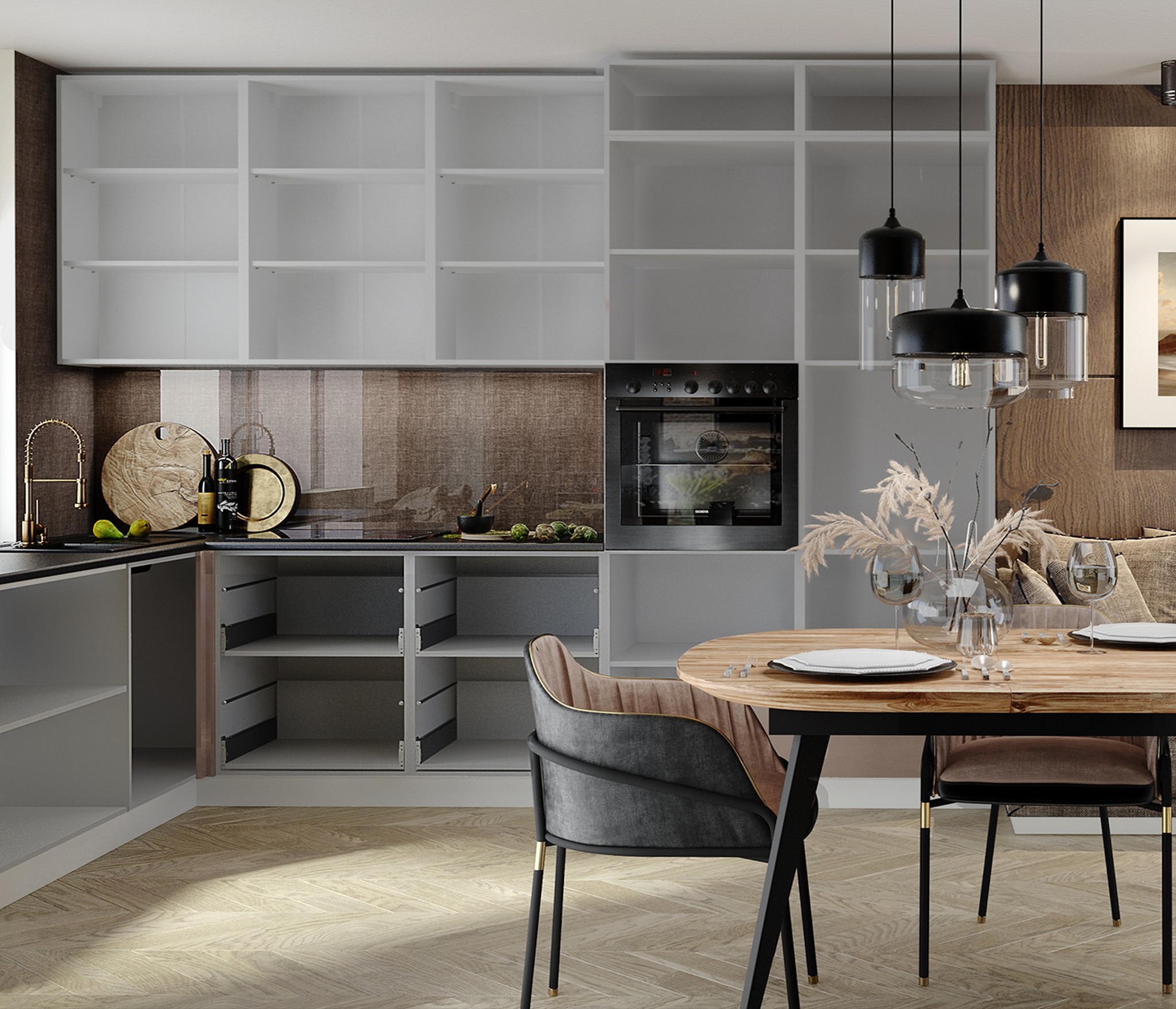 • Возможность организации Г-образной или П-образной композиции, что оптимально для просторных кухонь