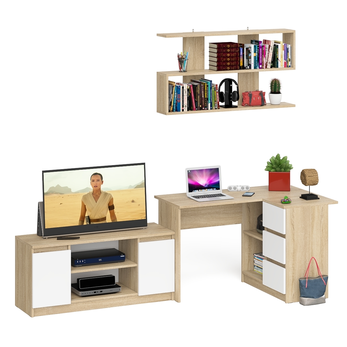 Отзывы о Столплит Стол угловой компьютерный Мори МС-16 правый с книжной полкой и ТВ-тумбой МТВ1200.1 Дуб Сонома, Белый