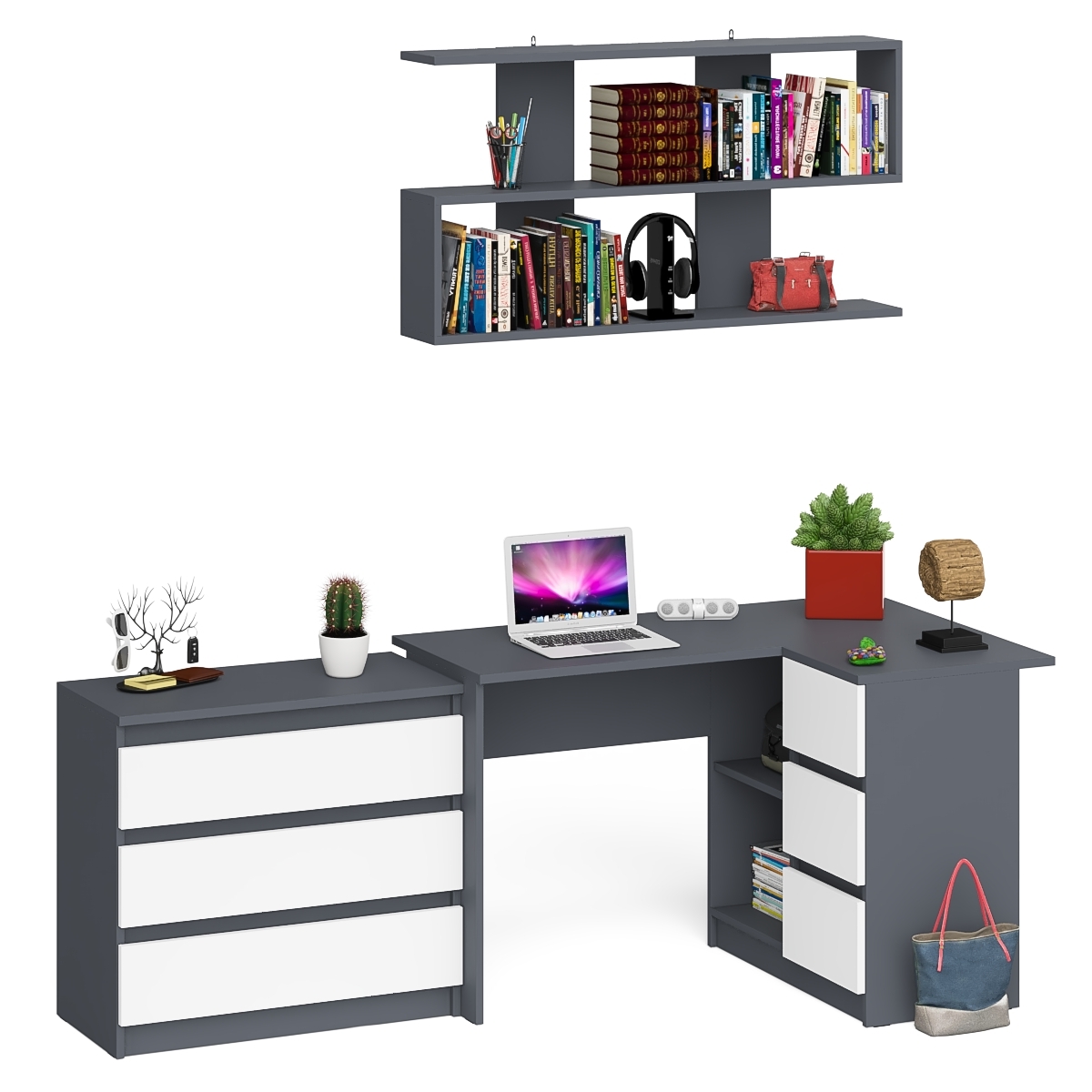 Отзывы о Столплит Стол компьютерный Мори МС-16 правый с навесной полкой и комодом МК800.1 Графит/Белый
