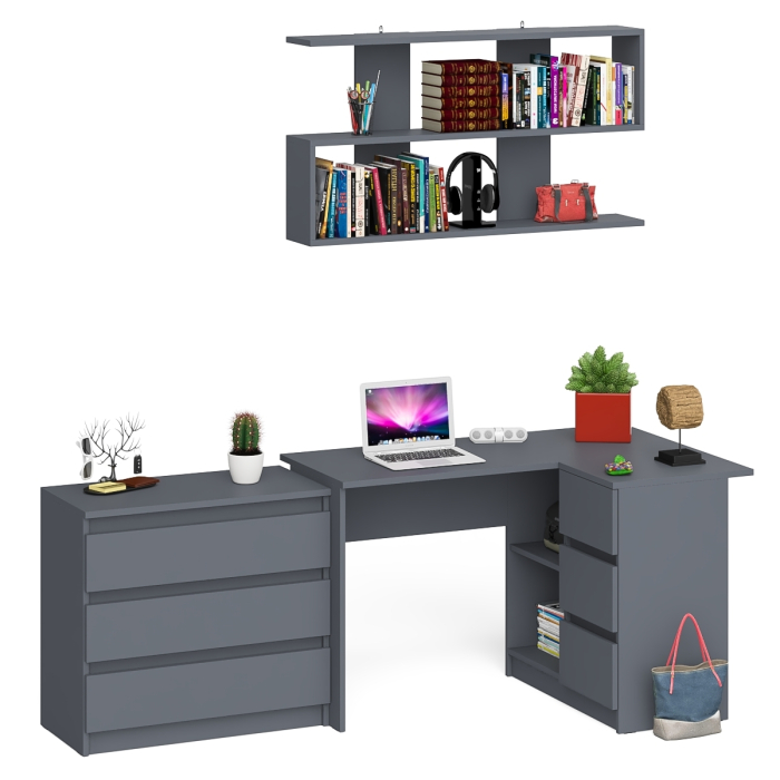 Отзывы о Столплит Стол компьютерный Мори МС-16 правый с навесной полкой и комодом МК800.1 Графит