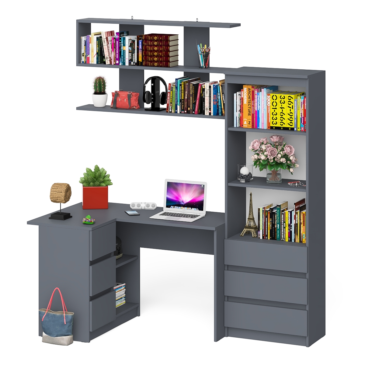 Отзывы о Столплит Уголок школьника Мори с угловым столом и полкой и стеллажом Графит