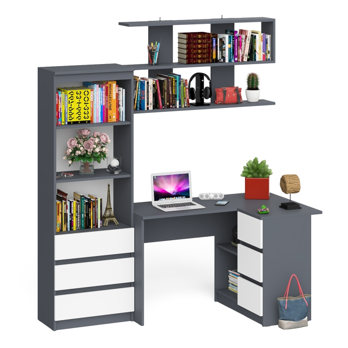 Отзывы о Столплит Рабочее место с угловым столом Мори МС-16 правым со стеллажом и полкой Графит/Белый