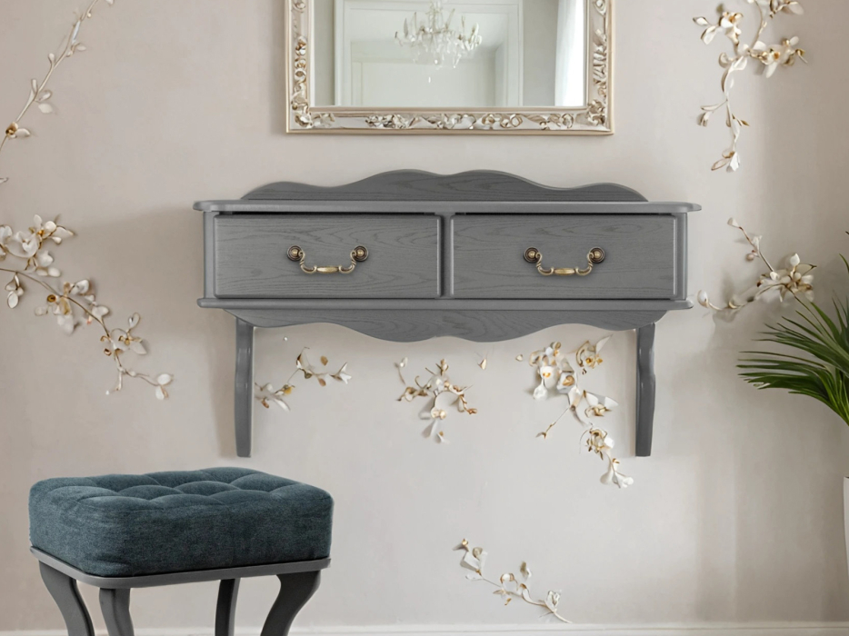 Стол консольного типа удобен тогда, когда вы точно определили его место в интерьере и не собираетесь его перемещать. Часто консоль используется для размещения над ней зеркала, либо картины. Консоль - достаточно компактный предмет интерьера. Несмотря на это, консоль может быть дополнена ящиком для хранения мелочей, либо косметики. Туалетный столик часто устанавливают в спальню. Если пространство весьма ограничено, то консольный столик можно использовать и как письменный, гримерный или маникюрный стол.