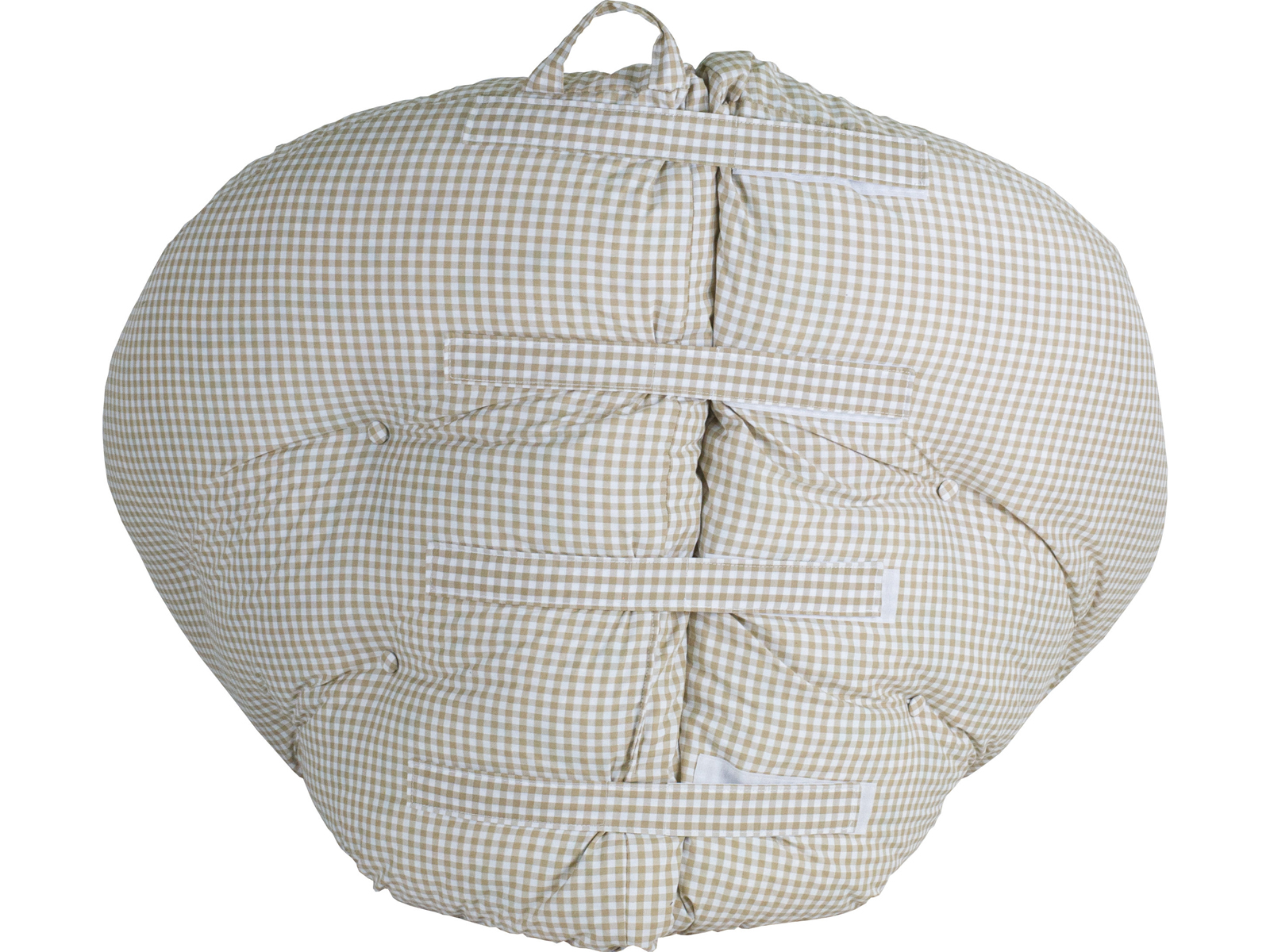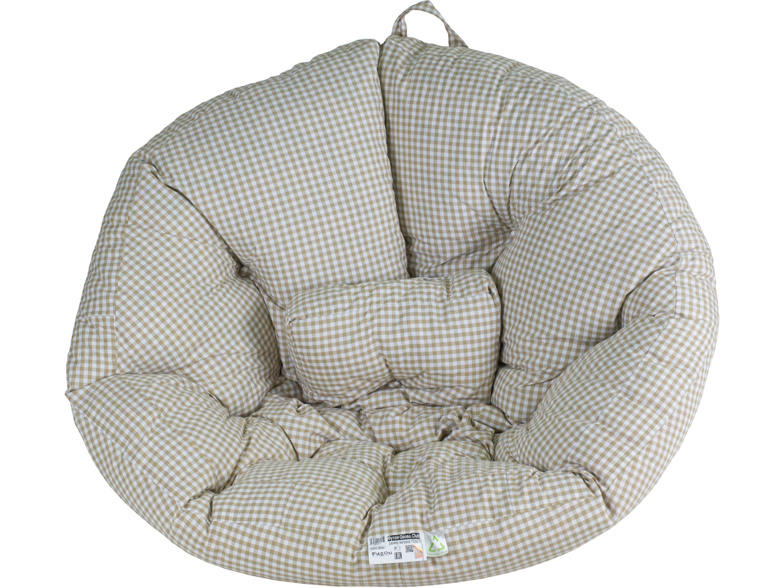В собранном виде футон принимает круглую форму. Вместительное углубление и мягкая спинка – преимущества модели перед креслом-мешком в виде груши.