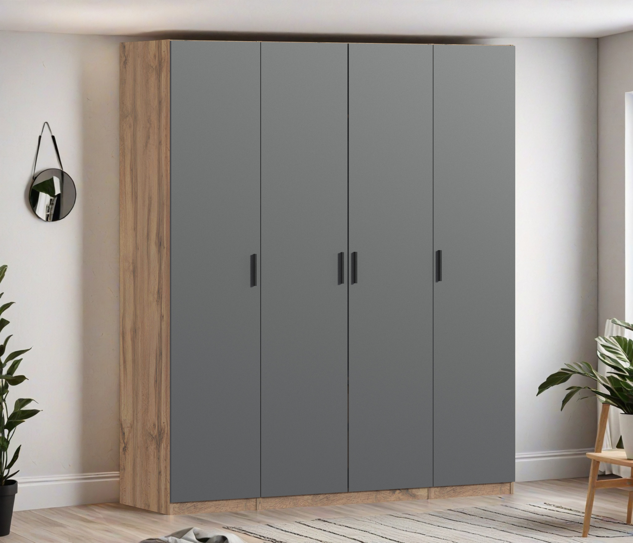 Отзывы о Столплит Шкаф четырехдверный Макс 2000 мм, вариант №3 (ЛДСП, корпус дуб вотан) Диамант серый