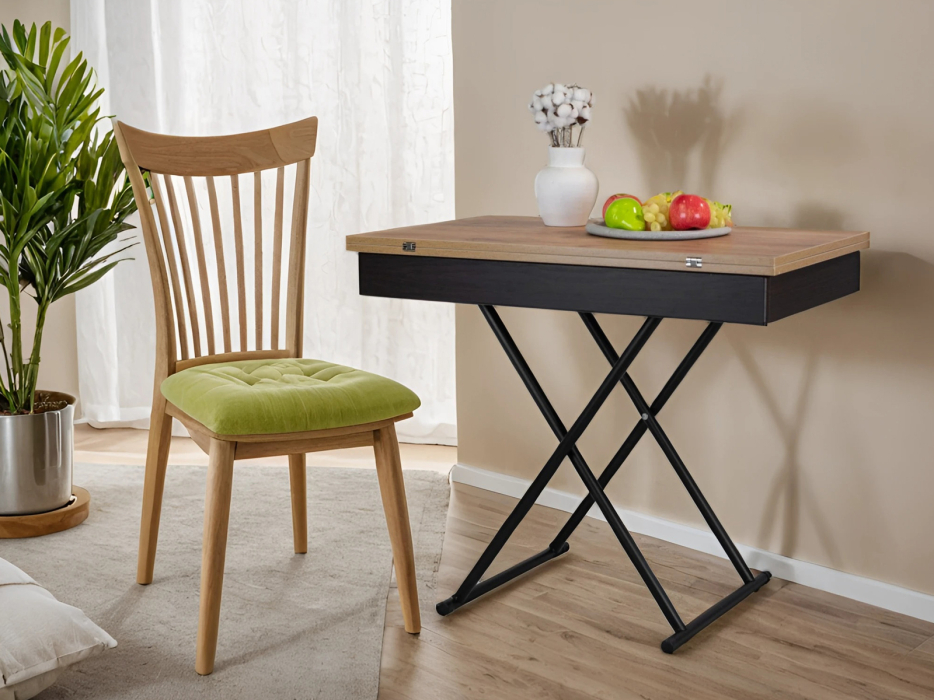 Раскладывающаяся столешница — это находка для тех, кто любит принимать гостей или просто хочет иметь больше пространства для творчества и работы. В сложенном виде она имеет размеры 550х900мм, в разложенном 1100х900мм. Лерон позволяет с комфортом разместить до 6 человек, а также оптимизировать пространство и повысить комфорт вашего дома.