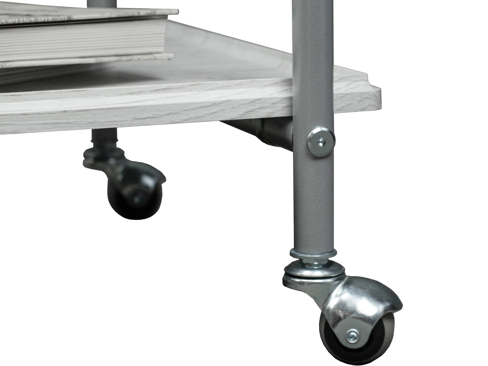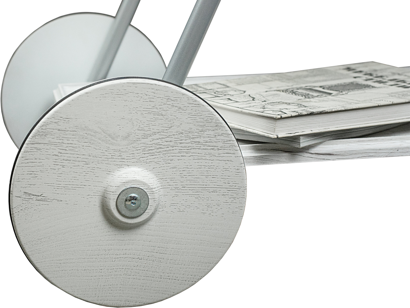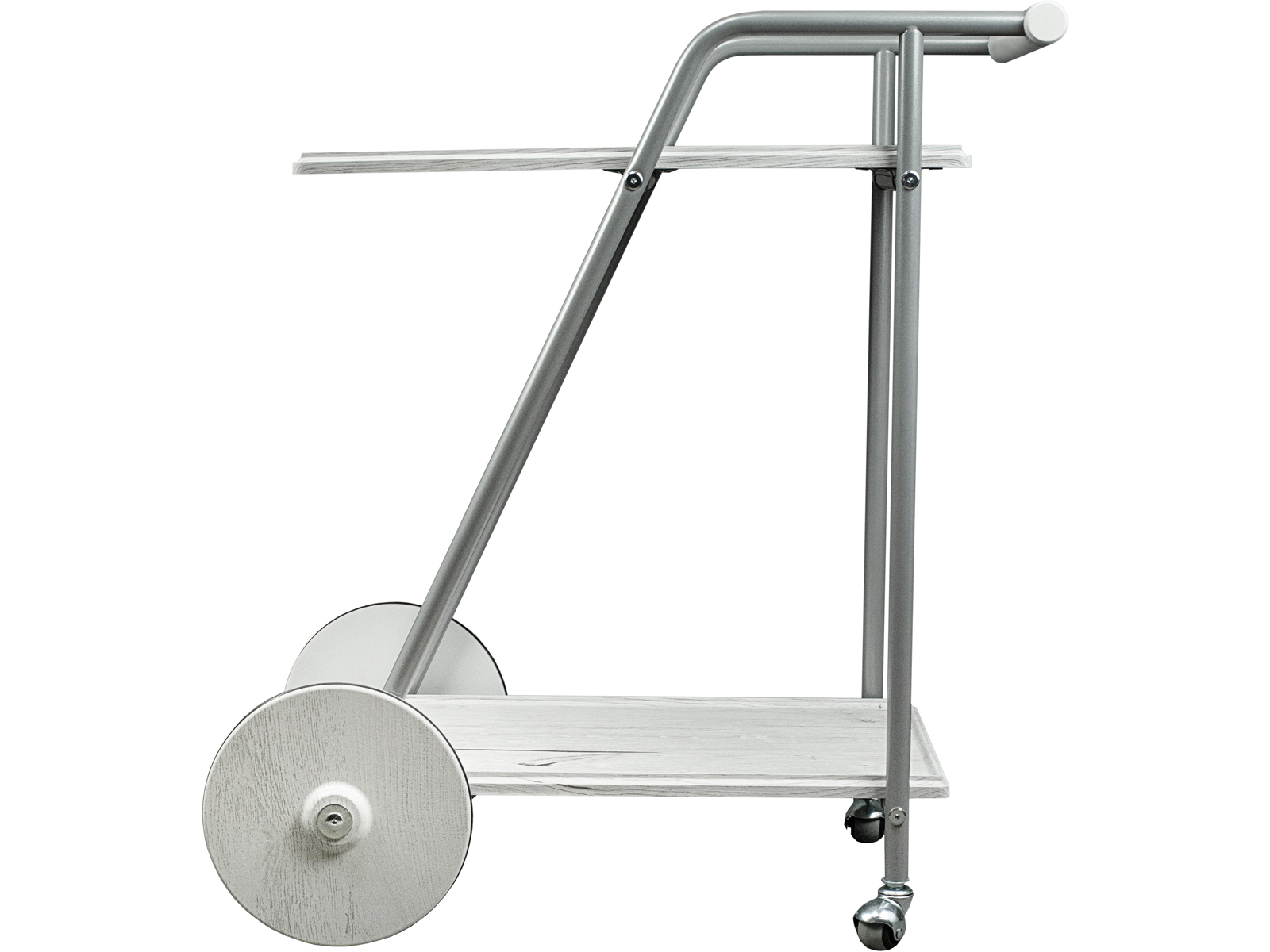 Сервировочный столик Оди добавит яркий акцент в интерьер квартиры или дома. Металлический каркас обеспечит прочность и устойчивость, а деревянная столешница из МДФ, покрытого плёнкой, гарантирует долгий срок службы. Главной особенностью изделия является сочетание больших и маленьких колёсиков. Удобная ручка позволяет с легкостью перемещать столик по комнате. Функциональный предмет мебели со съемным подносом подойдет для сервировки завтрака или для вечернего чаепития в спальне или гостиной.