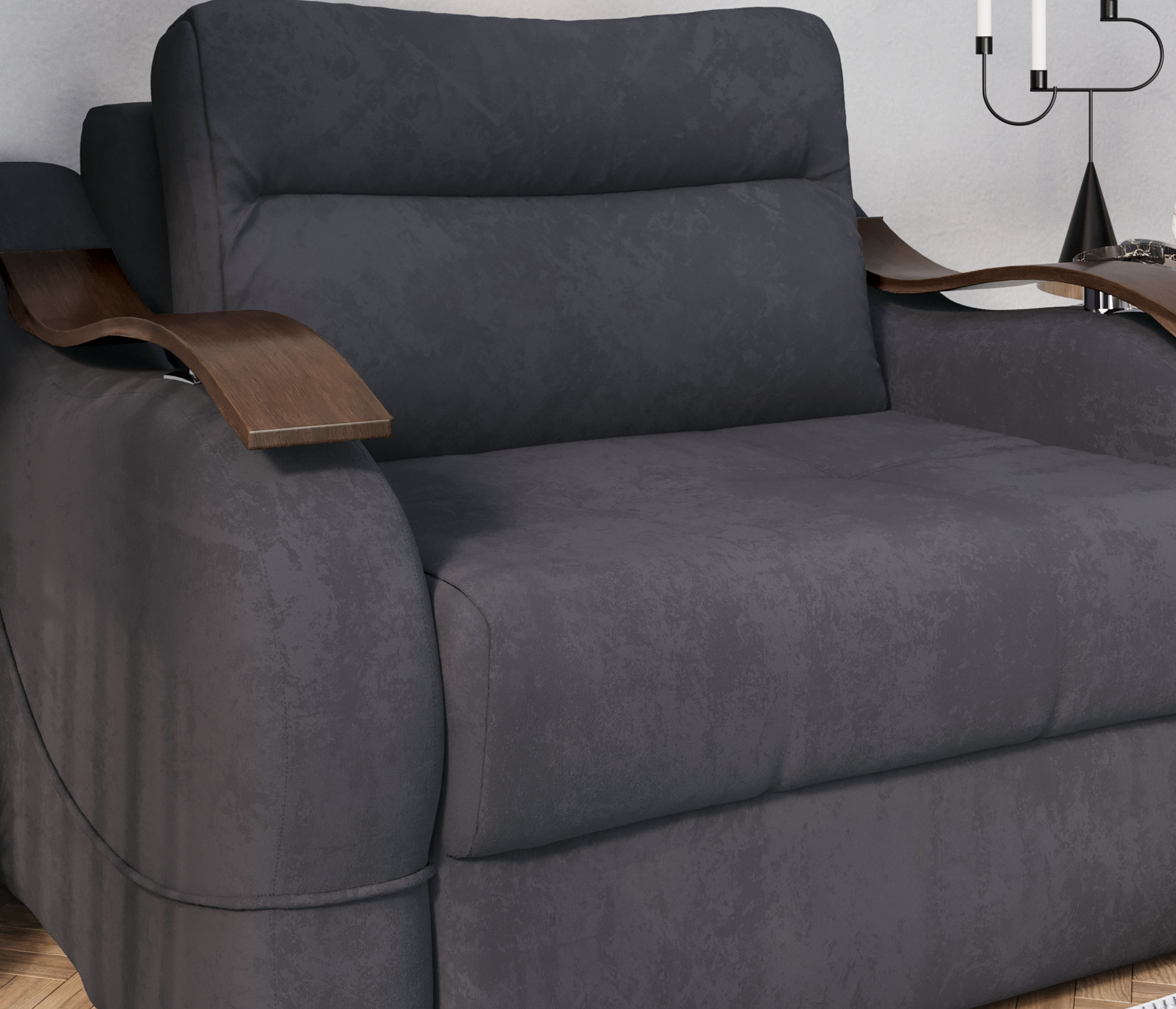 В подлокотниках предусмотрены декоративные вставки из МДФ, которые подчёркивают современный дизайн и визуально облегчают конструкцию.