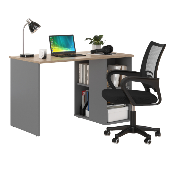 Отзывы о Столплит Стол письменный Лайт 12.163 и кресло-сетка 103 черное Дуб белый/Серый шифер