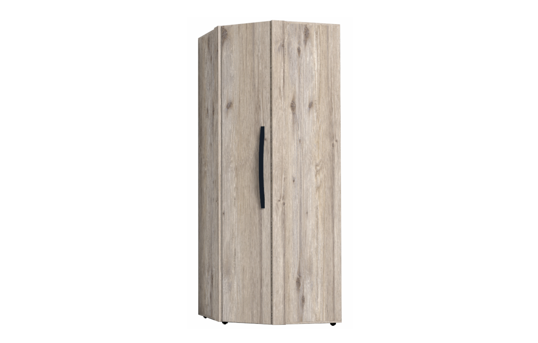 Отлично организовать пространство в маленькой спальне поможет угловой шкаф. Гладкие фасады и натуральный декор шкафа привнесут в комнату особый уют и теплоту. Стационарная штанга и полноценный стеллаж для белья внутри способствуют аккуратной организации вещей. Шкаф оснащен беспроводным светодиодным светильником, который включается при открывании двери. Это особенно удобно, если нужно найти в шкафу вещи, не потревожив близких. Легкая установка на магнитное крепление - не требует сверления, прокладывания провода, подключения к сети. Шкаф обязательно крепится к стене на подвесы, а компенсировать неровности пола можно, благодаря регулируемым опорам.