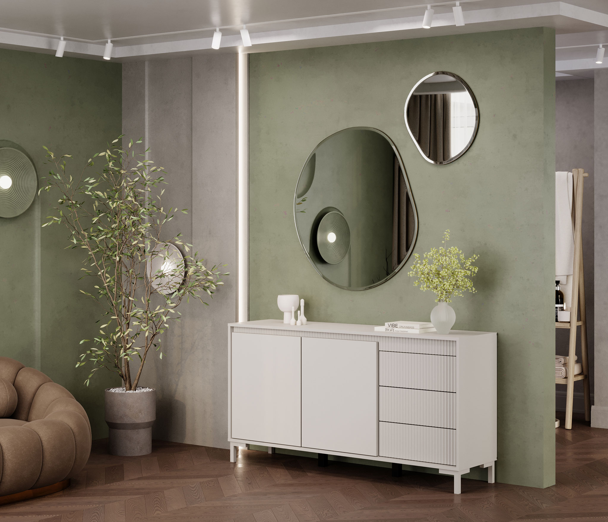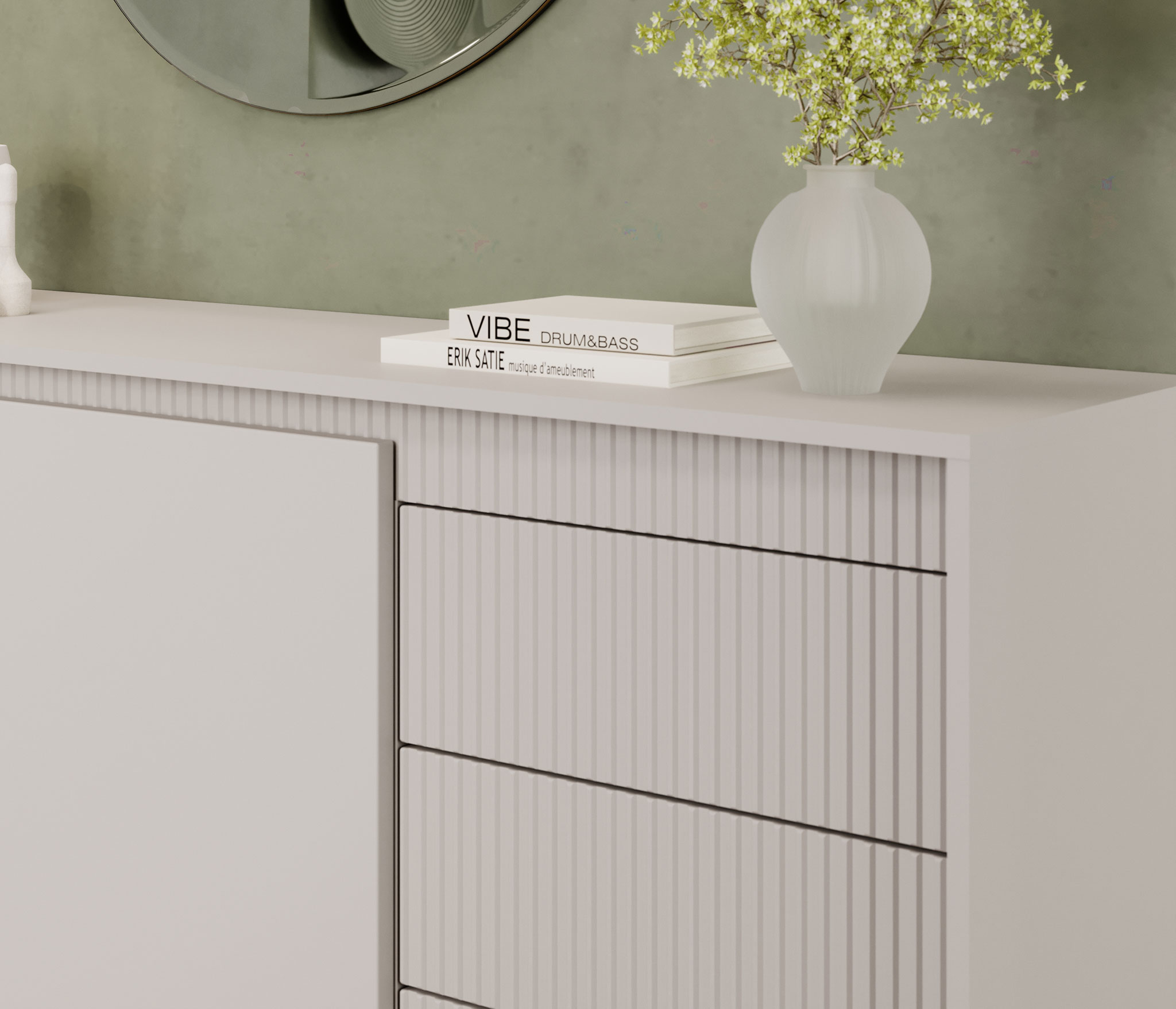 Комод Свейн - функциональный элемент модульной гостиной, который объединяет в себе удобство хранения и современный лаконичный дизайн.