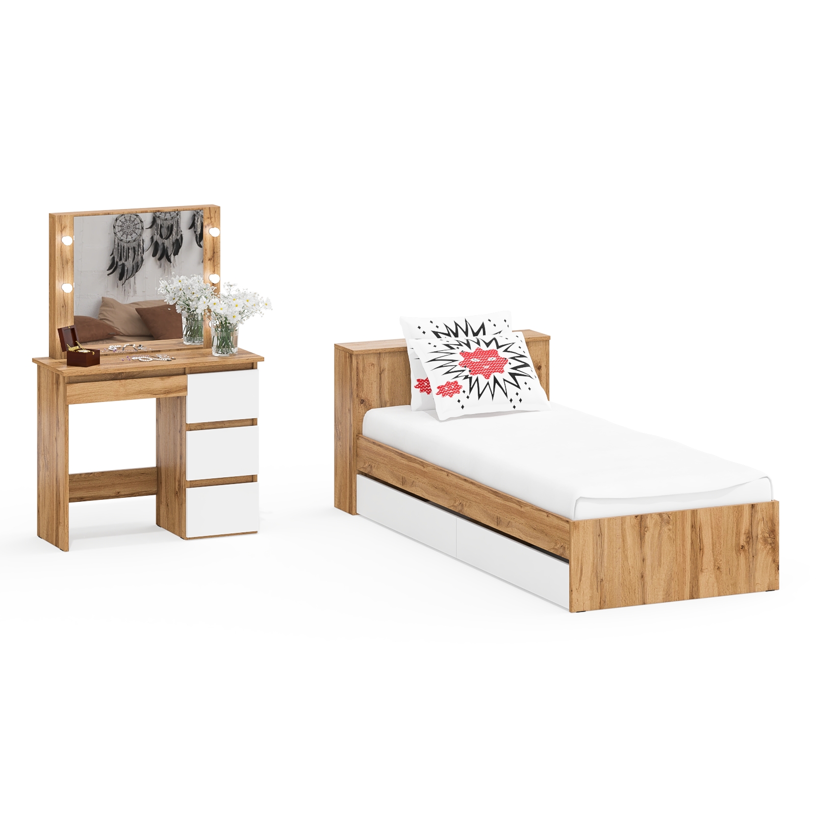 Отзывы о Столплит Кровать с ящиками Ксения 900 и столик косметический с подсветкой Сура Белый/Дуб вотан