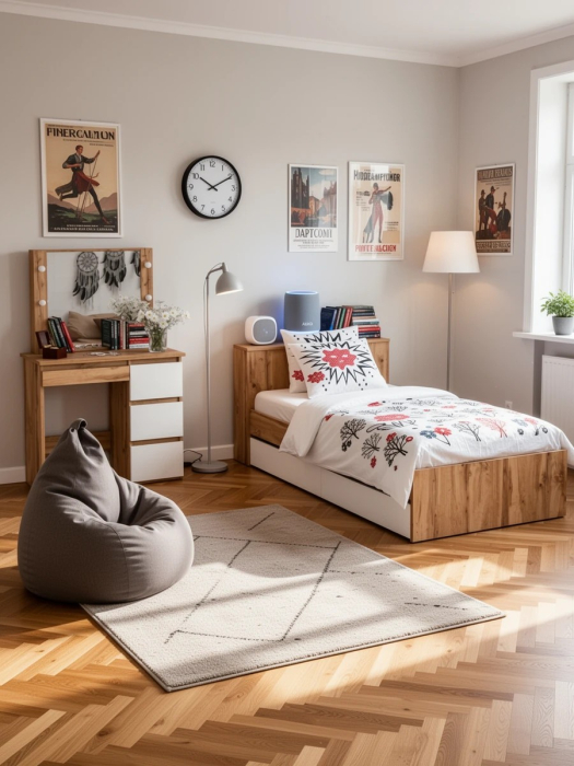 Кровать имеет односпальное место 900х2000 мм с прочным основанием в комплекте. Матрас приобретается отдельно. В основании кровати предусмотрены два ящика. В изголовье предусмотрена ниша с откидной дверкой, которая отлично подойдет для хранения. Кровать имеет универсальную сборку, что позволяет расположить выдвижные ящики как с левой, так и с правой стороны. Фасады ящиков выполнены без ручек – удобные выемки обеспечивают простоту использования.