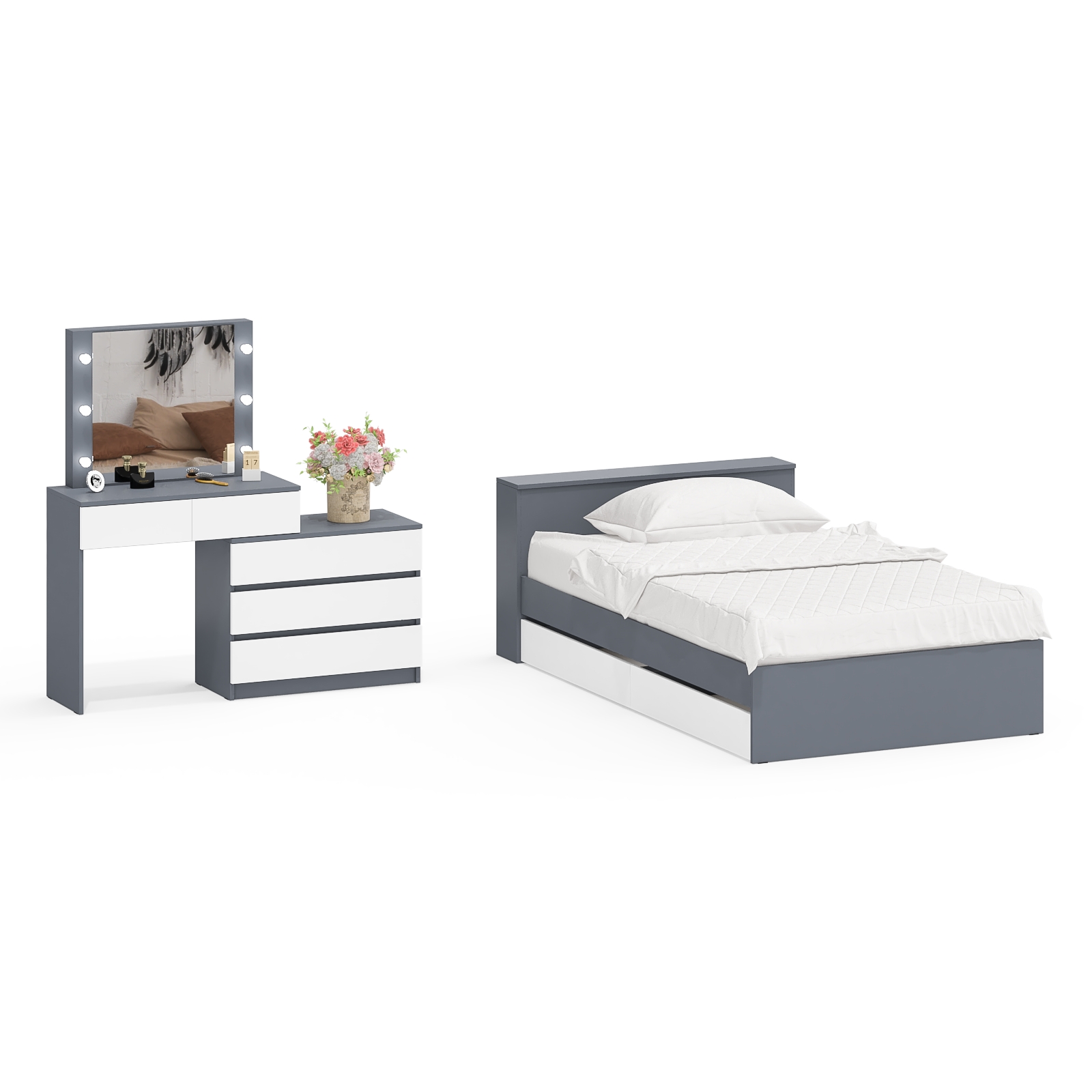 Отзывы о Столплит Столик туалетный с лампочками 110 с полутораспальной кроватью с ящиками Ксения 1200 Графит/Белый