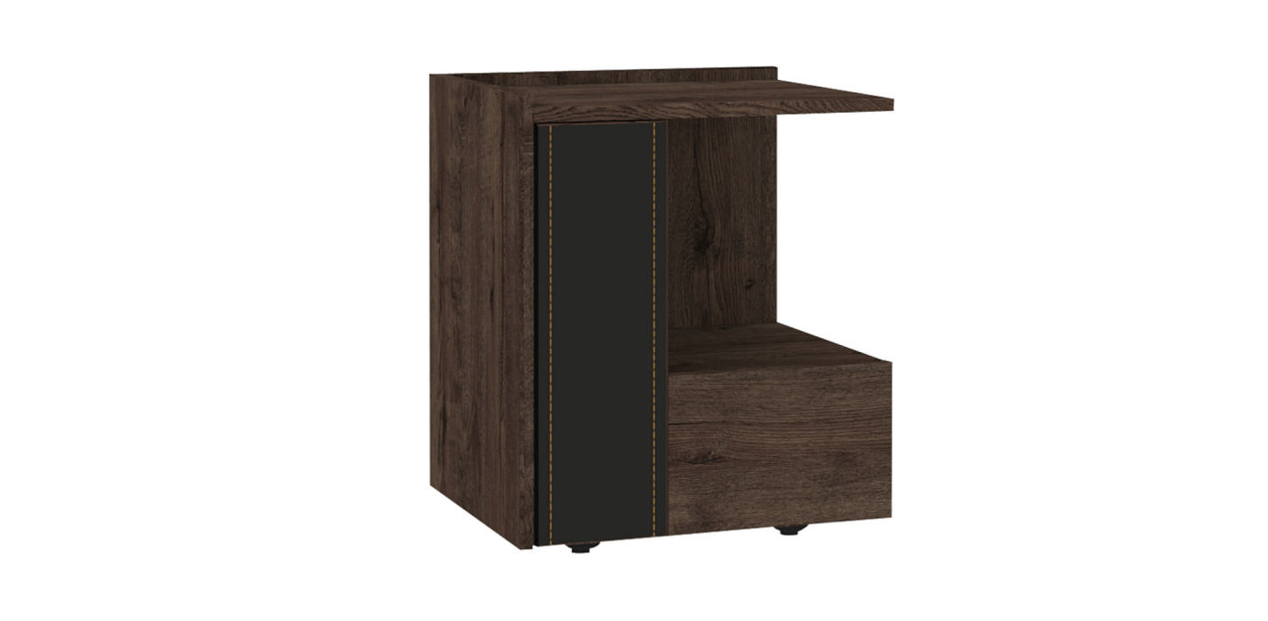 Стильная и практичная 42 Тумба прикроватная не оставит никого равнодушным. Благодаря оригинальному стилистическому решению и вставкам из экокожи черного цвета, тумба смотрится одновременно строго и элегантно. Универсальная конструкция сочетает в себе открытую полку, выдвижной ящик, нишу с дверью на петлях, что очень удобно для хранения вещей, которые так необходимы утром и вечером перед сном. Оптимальная высота прикроватной тумбочки позволит разместить в боковом отделении даже ноутбук.