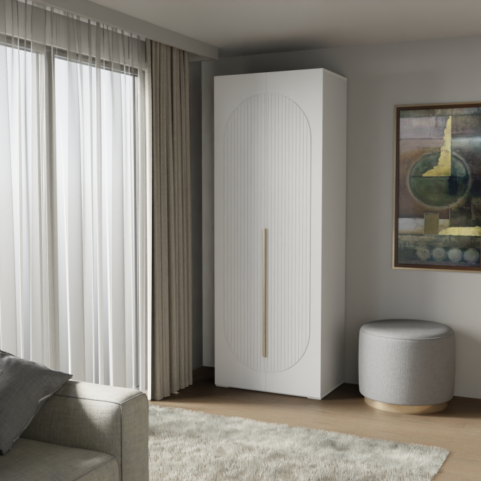 Этот вместительный распашной шкаф с габаритами 80,2х220×50 см предлагает оптимальное сочетание элегантного дизайна и практичной функциональности.