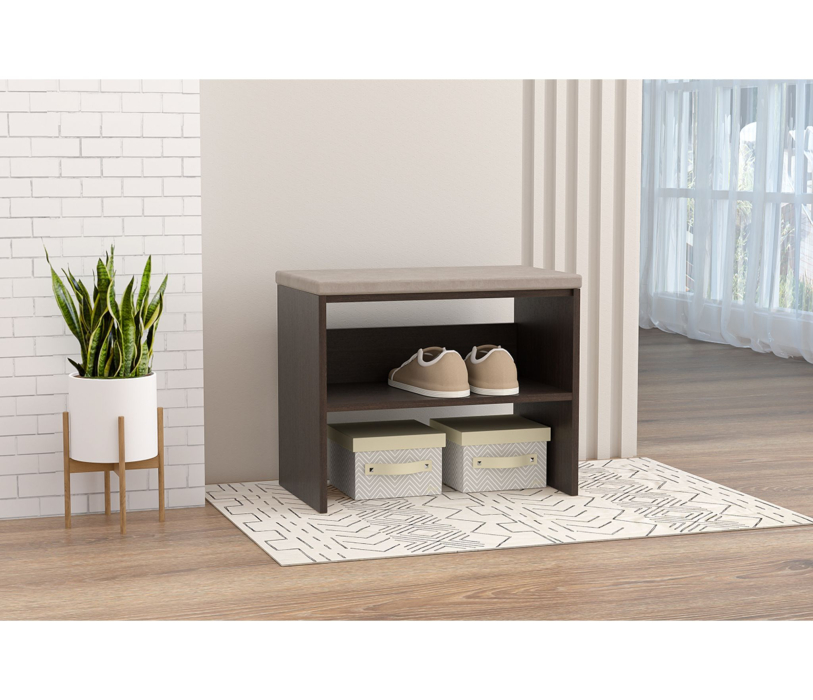 Открытая обувница с мягким верхом - это два предмета мебели в одном: