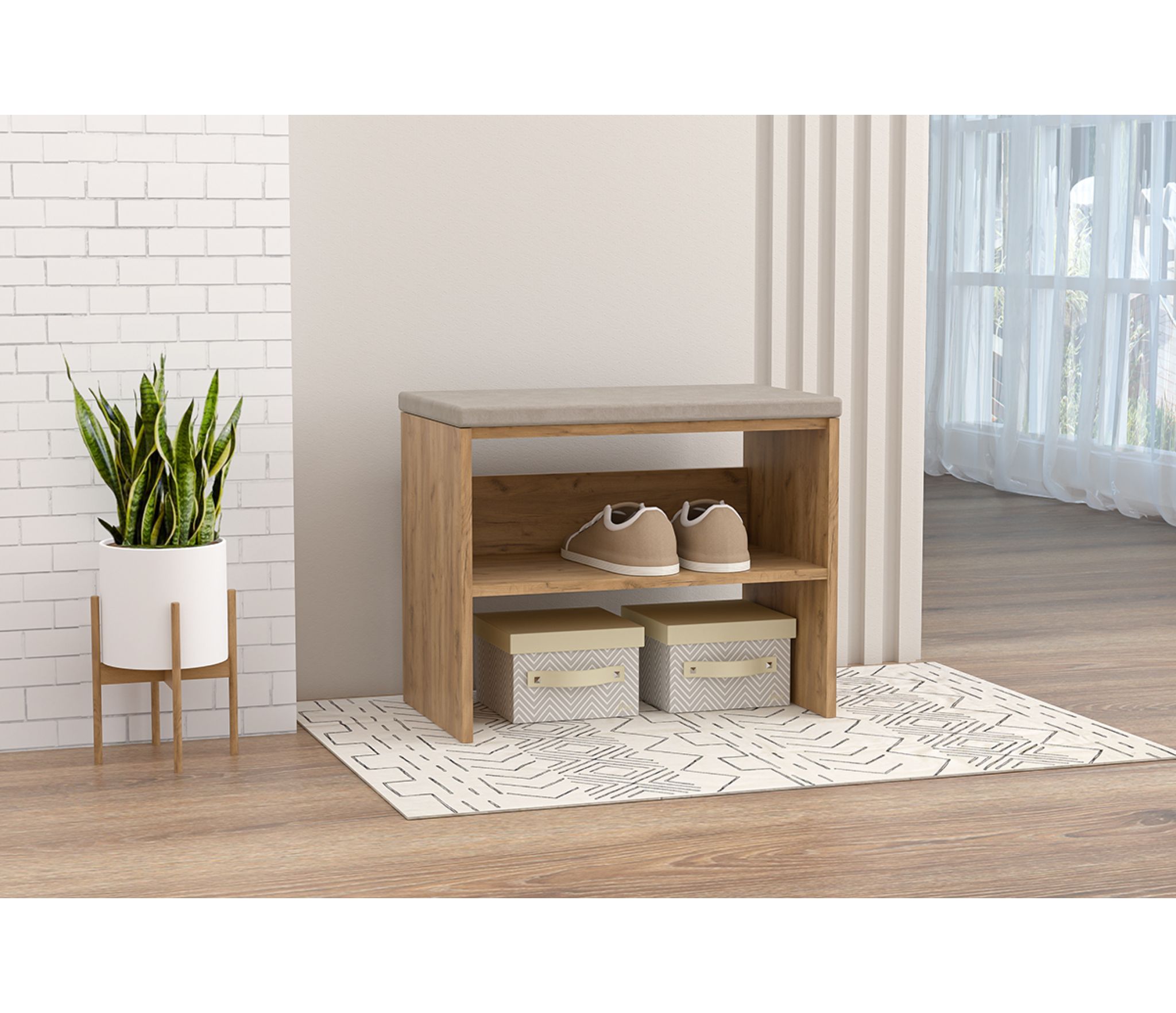 Открытая обувница с мягким верхом - это два предмета мебели в одном: