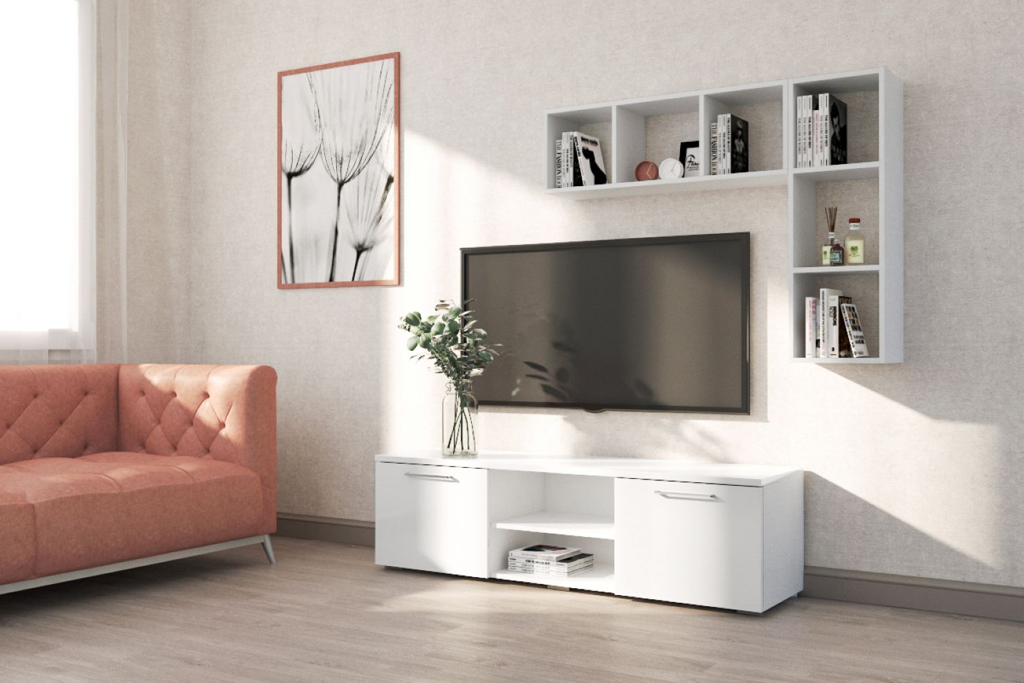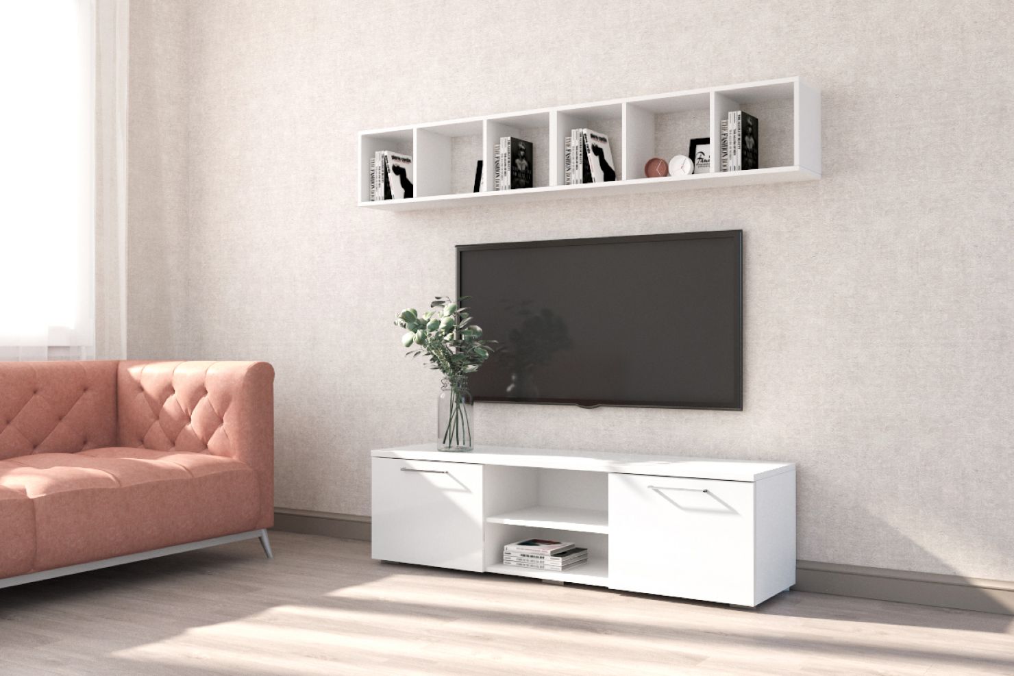 Открытые навесные полки - лёгкая и практичная деталь интерьера.
