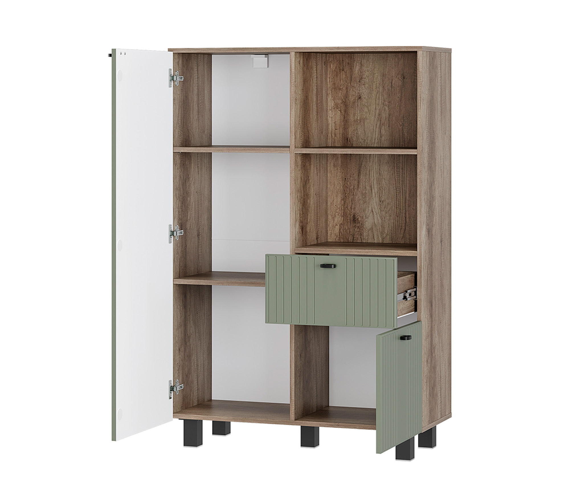 Шкаф "Олива" - это идеальное сочетание современного дизайна и функционала. Модель выглядит презентабельно и стильно. Матовые фасады из МДФ пастельного оттенка с оригинальной фрезеровкой будут отлично гармонировать как с насыщенными и нестандартными, так и с классическими решениями в интерьере.