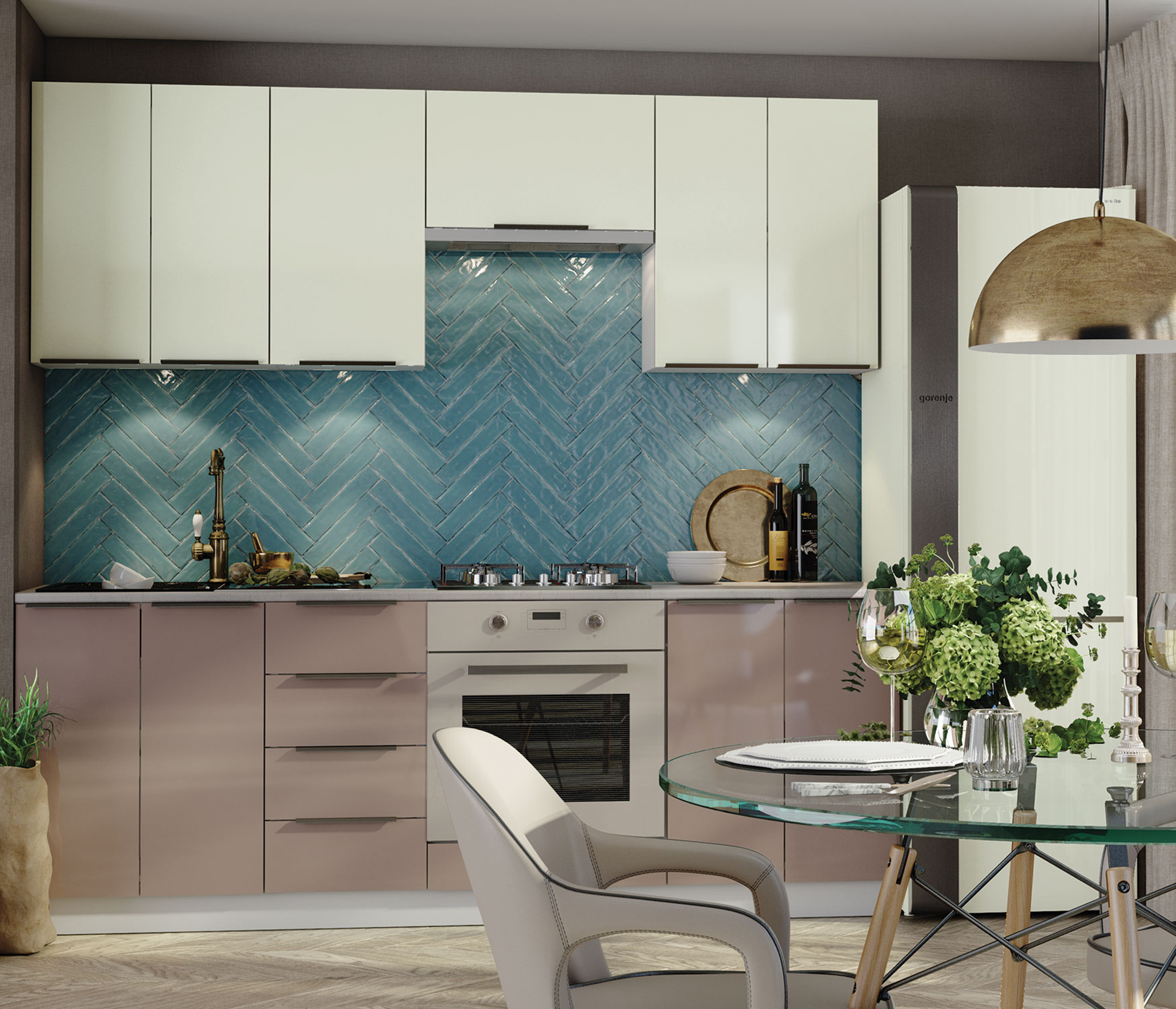 Модульная система Калипсо в исполнении представляет собой элегантное решение для создания гармоничного кухонного пространства. Сочетание двух теплых, но отличающихся по насыщенности оттенков формирует цельную композицию, которая визуально объединяет пространство, сохраняя при этом динамичность и выразительность. Длина данного исполнения 2,2 метра идеально подходит для компактных и средних кухонь, где требуется рациональное использование пространства без ущерба для функциональности. Размеры 220×215×57,6 см обеспечивают необходимый минимум рабочей поверхности и пространства для хранения. Сочетание близких оттенков: гармония и практичность Фасады выполнены с применением многослойного лакового покрытия KUPSIROL ZQ 6010 A от испанского производителя CUPSA. Технология УФ-отверждения обеспечивает высокий уровень блеска (90-100 единиц), придавая поверхности глубину и визуальный объем. Лаковое покрытие образует прочную защитную пленку, устойчивую к влаге, бытовым загрязнениям и механическим воздействиям. Конструкция и материалы высокого качества Модульная система спроектирована с учетом современных требований к долговечности и функциональности: • Корпус из 16 мм ЛДСП белого цвета создает нейтральную основу, которая подчеркивает выразительность глянцевых фасадов и обеспечивает структурную прочность • Тщательно продуманные пропорции модулей обеспечивают оптимальное соотношение между местами для хранения и открытым пространством Надежная фурнитура для комфортного использования Качество фурнитуры во многом определяет удобство эксплуатации и долговечность мебели: • Четырехшарнирные петли с доводчиками обеспечивают плавное открывание и закрывание дверей без лишнего шума. Система регулировки в трех плоскостях позволяет точно настроить положение фасадов и поддерживать их идеальное выравнивание в течение всего срока службы. • Металлические ручки черного матового цвета создают сдержанный контраст с теплыми оттенками фасадов и обеспечивают удобный захват. Матовое покрытие практически не показывает отпечатки пальцев и сохраняет привлекательный вид даже при интенсивном использовании. • Направляющие металлобоксы гарантируют плавное и бесшумное скольжение выдвижных ящиков. Они имеют высокую грузоподъемность до 25 кг, что позволяет использовать их для хранения тяжелой посуды, кухонной техники и запасов продуктов без риска повреждения. • Регулируемые навесы шкафов обеспечивают надежное крепление верхних модулей с возможностью точной подгонки. Это позволяет компенсировать неровности стен и гарантирует безопасность всей конструкции. • Регулируемые опоры высотой 100 мм выравнивают нижние модули на неровном полу, обеспечивают устойчивость конструкции и защищают мебель от случайного контакта с водой при уборке. • Теплая цветовая гамма способствует созданию уютного и располагающего пространства • Глянцевая поверхность отражает свет, визуально увеличивая помещение и делая его светлее • Мягкие нейтральные тона хорошо сочетаются с различными отделочными материалами и цветовыми акцентами • Близкие по тону цвета создают элегантный и гармоничный образ, не требующий дополнительных декоративных элементов • Нюансное сочетание оттенков выглядит более изысканно и сдержанно, чем контрастные цветовые пары Практически