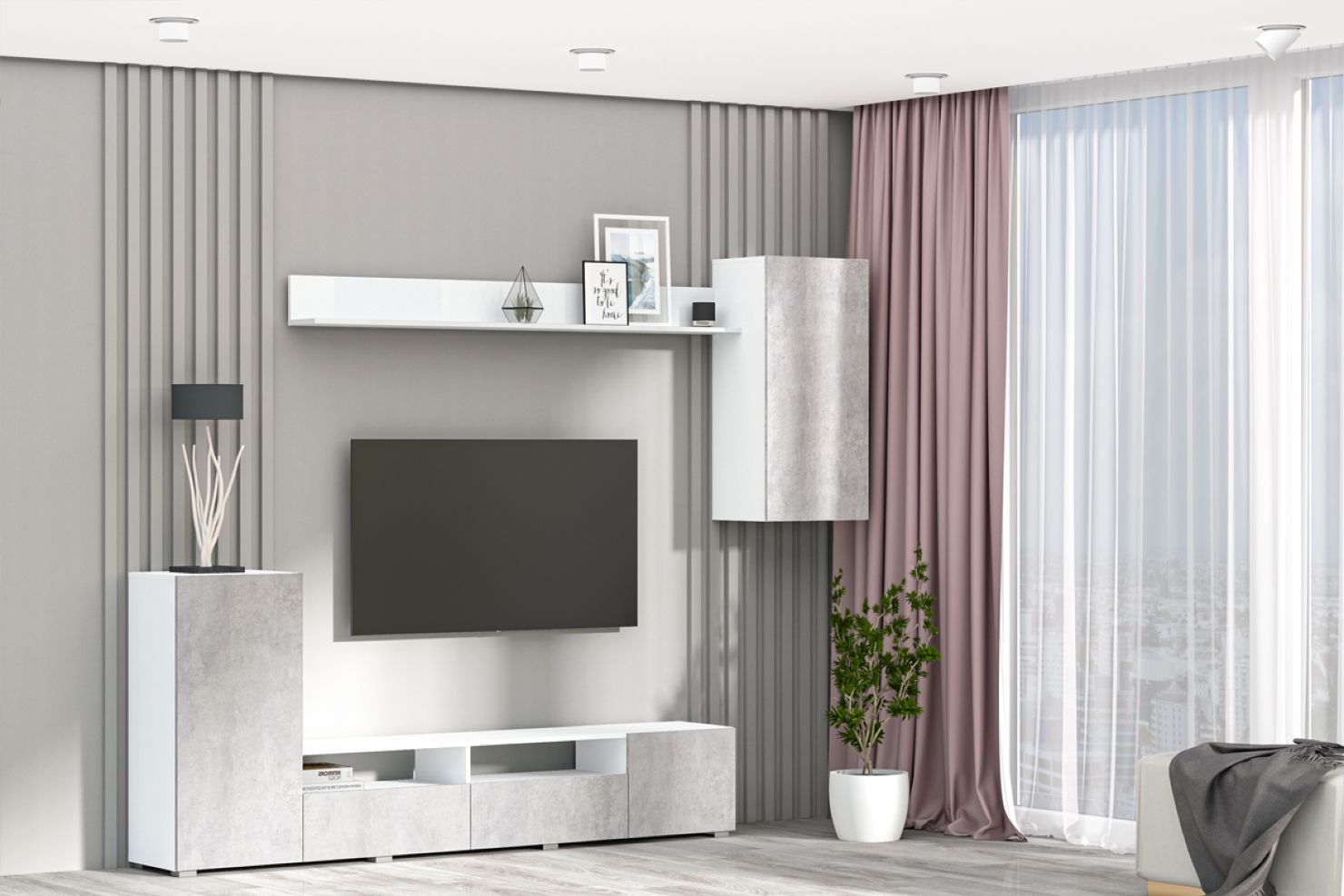 Аллегро 2 гостиная / Белый/цемент светлый станет основой интерьера гостиной комнаты.