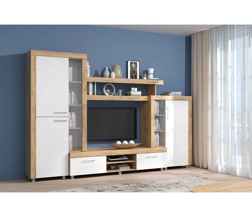 Аллегро 1 гостиная / Дуб золотой/белый станет основой интерьера гостиной комнаты.