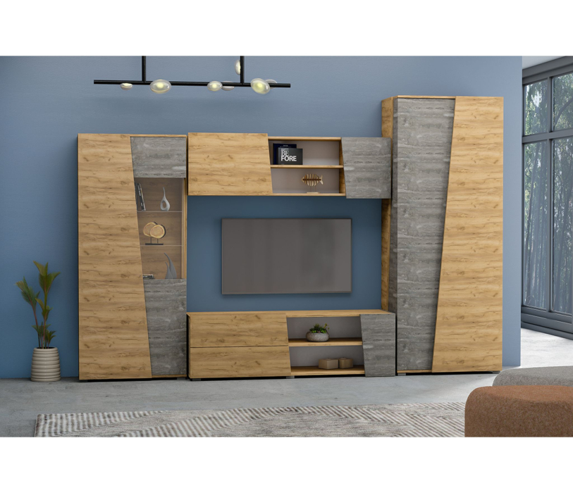 2)Тумба под ТВ с двумя выдвижными ящиками и нишами, 1500х478х420 мм;