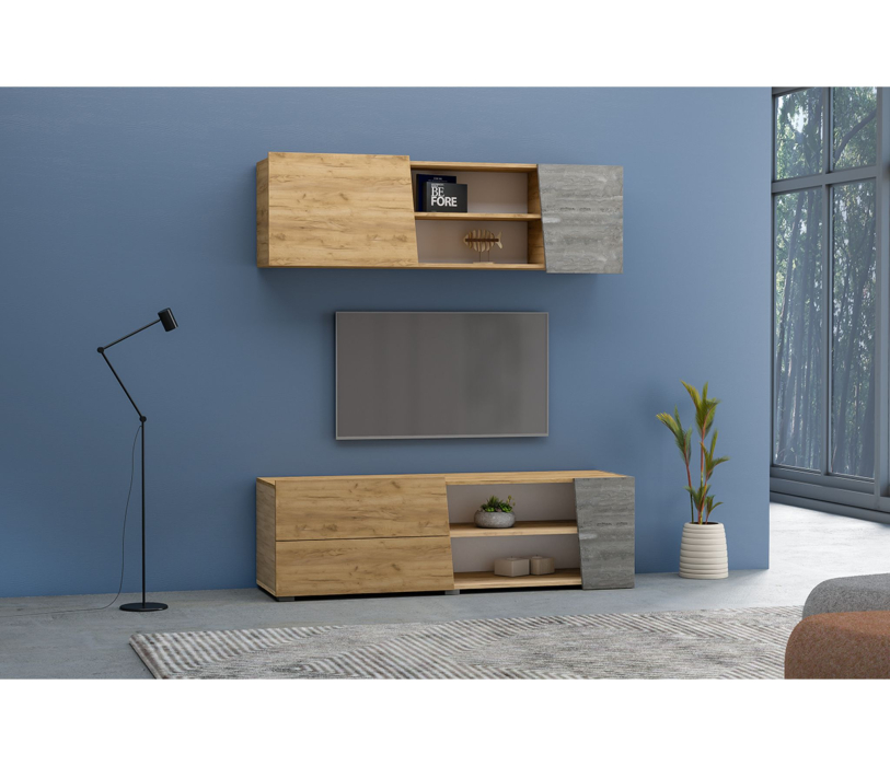 1) Тумба под ТВ с двумя выдвижными ящиками и нишами, 1500х478х420 мм;