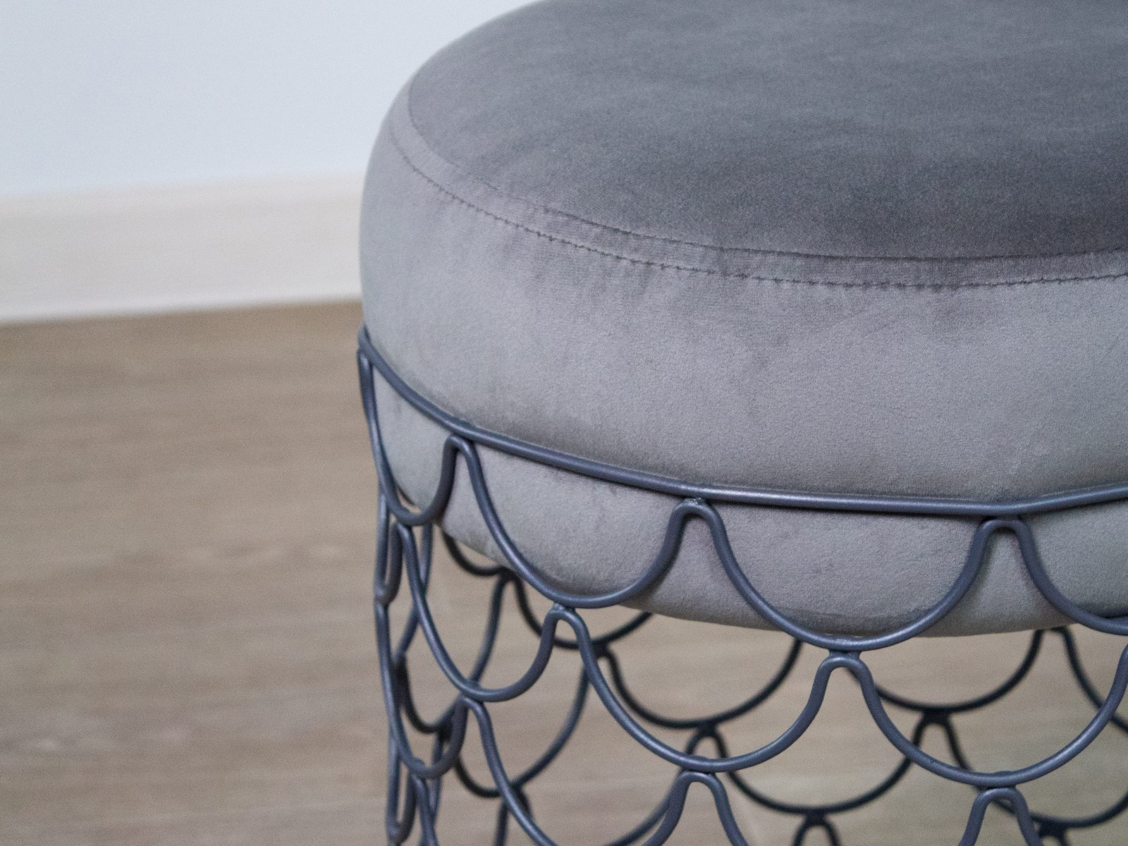 из прутка. Надежность металла и мягкость ткани прекрасно сочетаются в готовом исполнении пуфа.