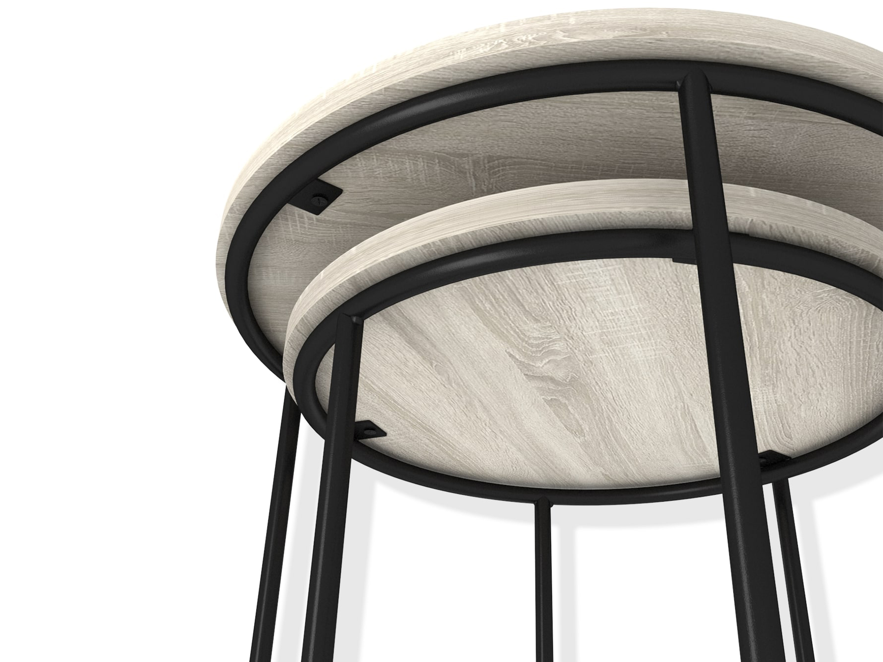 Диаметр столешницы верхнего столика 450 мм. Диаметр столешницы нижнего столика 366 мм.